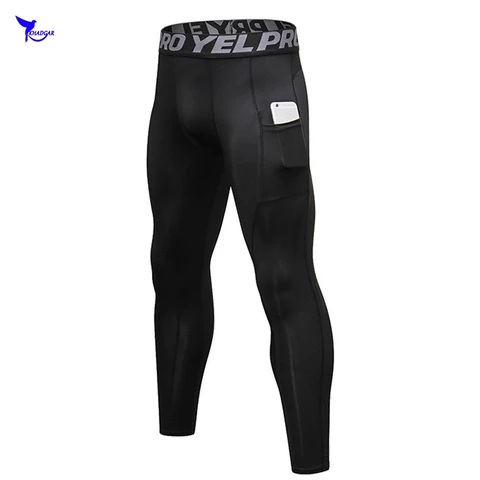 Quick Dry Elastic Compression Running Pants with Pockets Breathable Mens Gym Fitness Leggings Base Layer Jogging Tights Clothing
