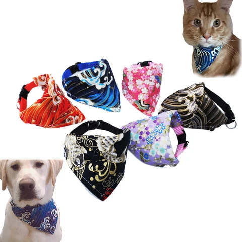 Adjustable Small Dog Cat Collar Scarf 6 Colors Print Puppy Kitten Bandana Neckerchief Pet Accessories For Dogs Cats Kedi Scarves