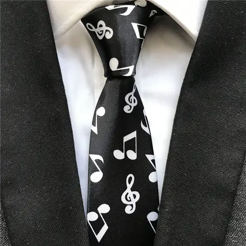 5cm Fashion Skinny Ties Black with White Musical Notes Neckties Men Children Classic Music Necktie