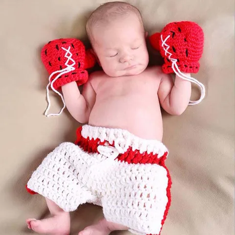 Boxing Gloves Shorts Costume Set Newborn Baby Photography Props Boys Boxer Outfit Shower Gift 3 Colors H206