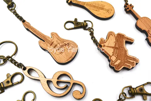 Niko Wooden Curved Guitar/Drum/Piano/Violin/French Horn/Pipa/Erhu Keychain Classical Modern Nation Musical Instrument Key Ring
