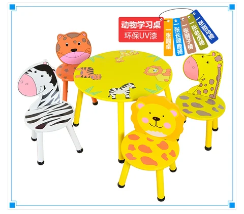 Children Study Table and Chair Set Household Pupils Solid Wood Writing Desk and Stools Muebles De Madera Kids Furniture