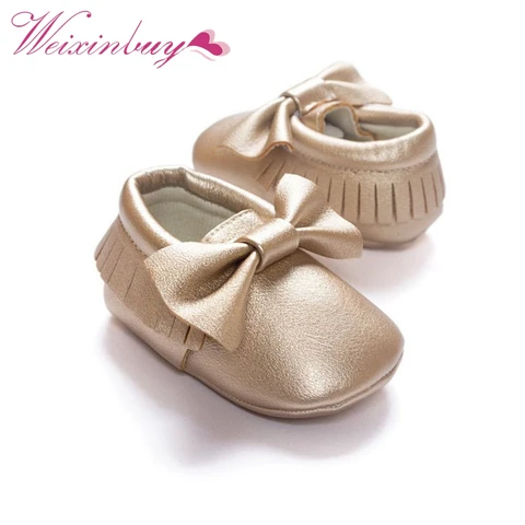 New Arrived 8 colors Baby Girl Shoes Riband Bow Lace Up PU Leather Princess Baby Shoes First Walkers Newborn Moccasins For Girls