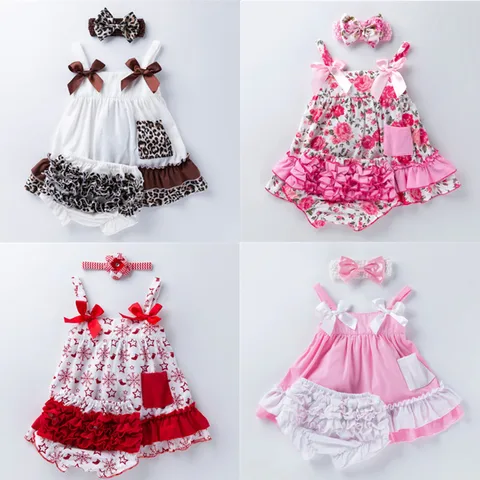 New Baby Girl Clothes Baby Sets Cotton Sleeveless Toddler Infant Ruffle Tops + Shorts Overall Floral Clothes Set 3-24 month