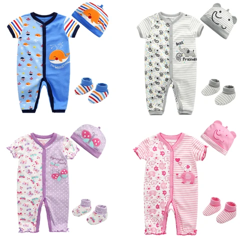 3PCS Baby Romper+Hat+Socks Clothing Sets Baby Girl Clothes Cotton Baby Boy Clothes Short Sleeve Girls Clothes Newborn Infant