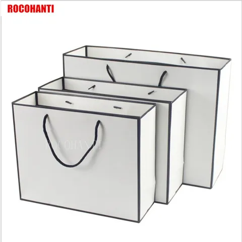 50X Black Frame White Shopping Paper bag with String Customized LOGO Printing accept