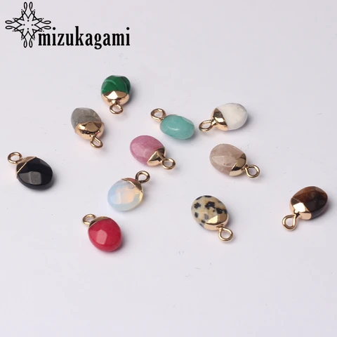 10*8mm 2pcs/lot Natural Stone Charms Pendant Copper Mini Cute Oval Natural Color Stone Charms DIY Jewelry Accessories