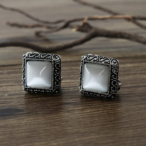 COWNINE(TM) High Quality Square Shape Opal Rhinestone Clip on Earrings Without Piercing for Women Party Luxury Jewelry Ear Clip