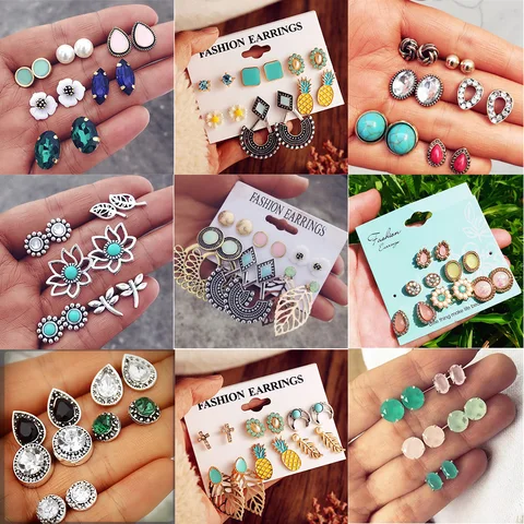 IF ME Vintage Stud Earrings Set Mixed for Women Bohemian Gold Color Leaf Flower Stone Statement Hang Brincos Jewelry 2019 NEW
