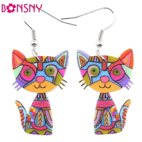 Bonsny Drop Cat Acrylic Earrings Big Long Dangle Earring 2016 Fashion Jewelry For Women Girl New Style Cute Animal Accessories