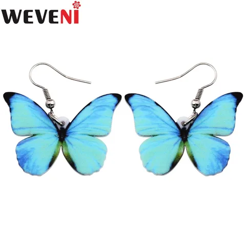 WEVENI Acrylic Drop Dangle Big Morpho Menelaus Butterfly Earrings Drop Shipping Fashion Accessories Insect Jewelry For Women