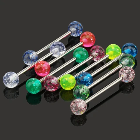 5/10PC Acrylic Barbell Sex Tongue Piercing Tongue Rings Flashing Plastic Nipple Ring Ear Body Jewelry Gift