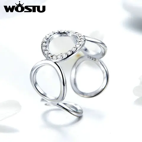WOSTU 2019 European Round Circle Adjustable Big Ring Clear Zircon Finger Rings For Women Wedding Anniversary Jewelry Gift FFR216