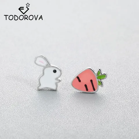 Todorova Cute Animal Bunny Rabbit Carrot Stud Earrings for Women Enamel Asymmetry Creative Cartoon Ear Jewelry for Child Girls