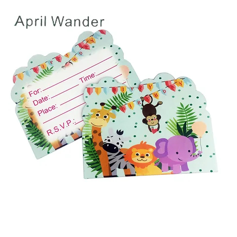 10pcs/lot Lovely Elephant/giraffe/Lion Invitation Cards for Happy Birthday Party Decorations Zoo Animals party Supplies