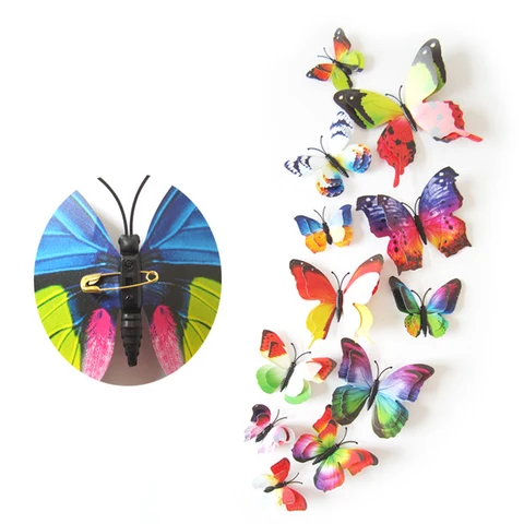 12pcs/lot PVC Butterfly 3D sticker home Art Design Wall Decor Bedroom Living room Decorative Decal Kids Room DIY Party Supplies