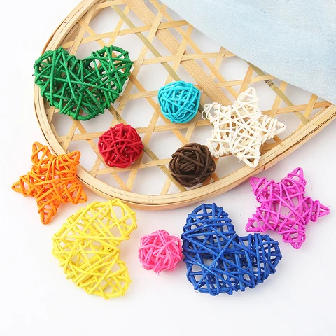 5Pcs Multicolor Rattan Ball Round/Heart/Star Takraw DIY Decoration Supplies for Wedding Home Garden/Birthday/Party Decor