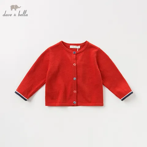 DB11846-1 dave bella autumn infant baby girls fashion red cartoon print cardigan kids toddler coat children cute knitted sweater