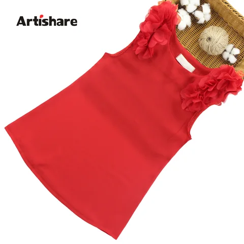 Sleeveless Summer Girls Blouses Vest Tops Cotton Casual Baby Girls Solid Shirts for Children Kids Clothing Shirts Dress