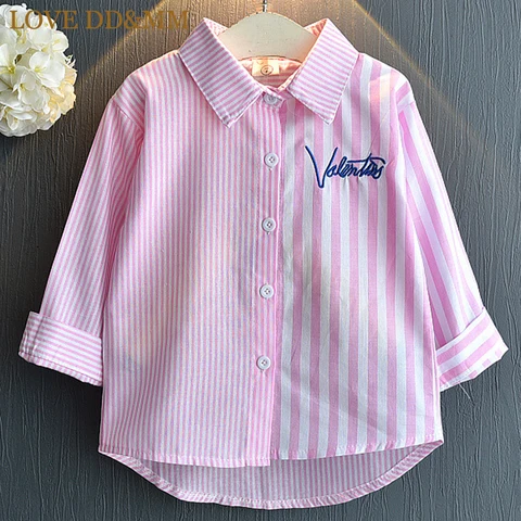LOVE DD&MM Girl Shirts 2020 Spring New Children's Wear Girls Fashion Long-Sleeved Striped Embroidered Shirt