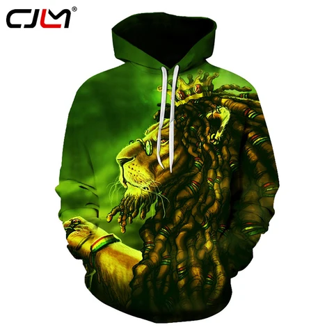 CJLM 3D Green Hoodies Men Printed Lion King Hooded Sweatshirts With Long Drawstring Cool Fashion Hip Hop Streetwear Jersey Teens
