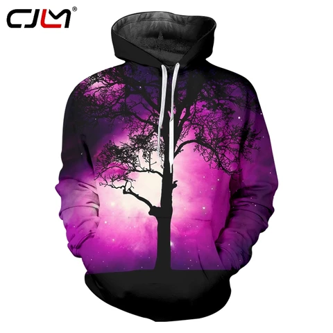 CJLM Man On Sale Popular Hoodies 3D Purple Dream Tree Full Printed Starry Sky Men's Black Pullover