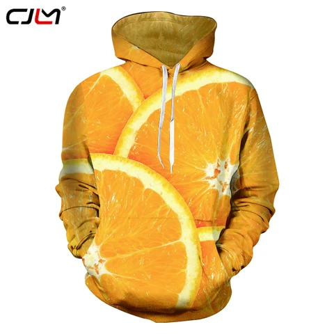 CJLM Harajuku Hot Sale Print Fruit Orange 3d Hoodies Sweatshirt Man Casual Hip Hop Tracksuit Big Pocket Pullovers