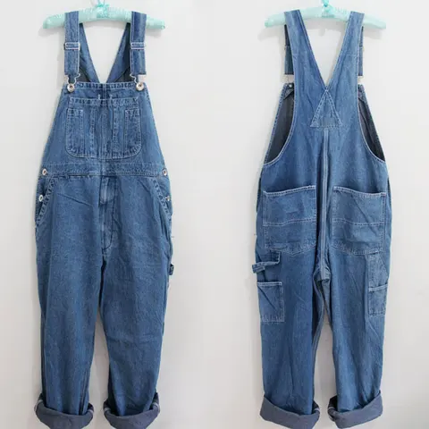 New 2020 Fashion Vintage Design Pocket Jeans Denim Overalls Men Casual Wash Skinny Bib Overalls Jeans Male Blue Jumpsuit Jean