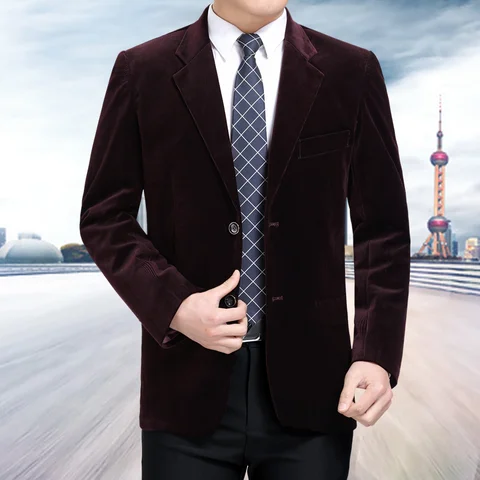 New middle-aged men's business casual suit high-end corduroy suit jacket spring and autumn solid color blazer coat mens blazers
