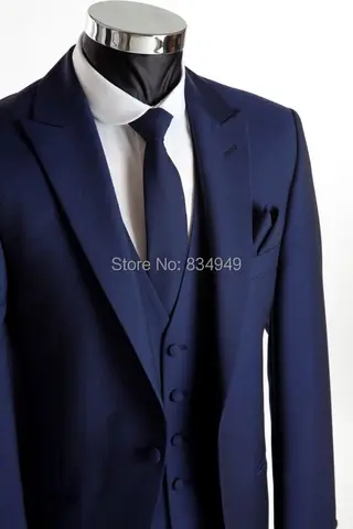 Wedding Suits For Men Dark Blue Custom Made, Bespoke Blue Wedding Tuxedos For Men, 2 Button Peak Lapel Men Wedding Suit