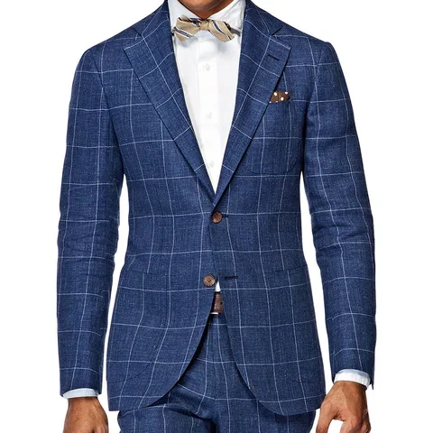 Men'S Wardrobe Essentials Slim Fit Windowpane Suit Tailor Made Navy Blue Windowpane Check Suits For Men,Elegant Business Suit