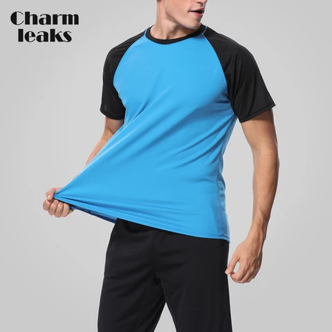 Charmleaks Men Rashguard Dry-Fit Shirts Outdoor Men Loose Fit Running Shirt UV-Protection Rash Guard Top UPF 50+ Beach Wear