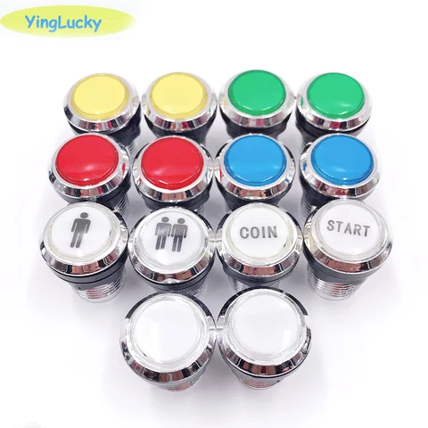 1pcs 33MM CHROME Plated illuminated 12v LED Arcade Push Button with microswitch player 1 and player 2