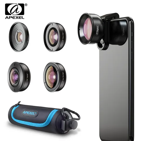 APEXEL 5in1 Mobile Phone Lens Case Kit Photography HD Fisheye Super Wide Angle 4K Macro Telescope Lens Set for Samsung iPhone