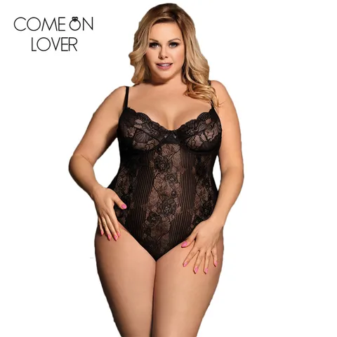 Comeonlover Lace Bodysuit Overalls Stitching Plus Size Women Body Mujer Hollow Out Transparent Floral Sexy Sleeveless RI80875