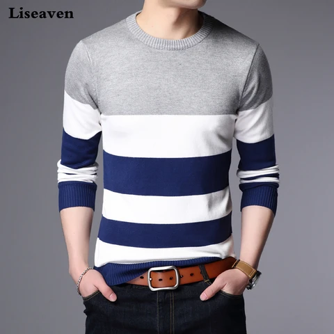 Liseaven Sweater Male Pullover Men Brand Casual Sweaters Striped Mens Cashmere Sweater Outerwear Jumper Pullovers