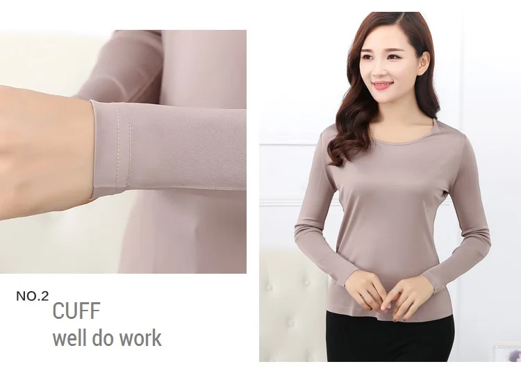 100% Pure Silk Women’s T-shirts Femme Long Sleeve Casual Tees T Shirt Tops Female O-Neck Women T-shirt For Woman Candy 7 Colors