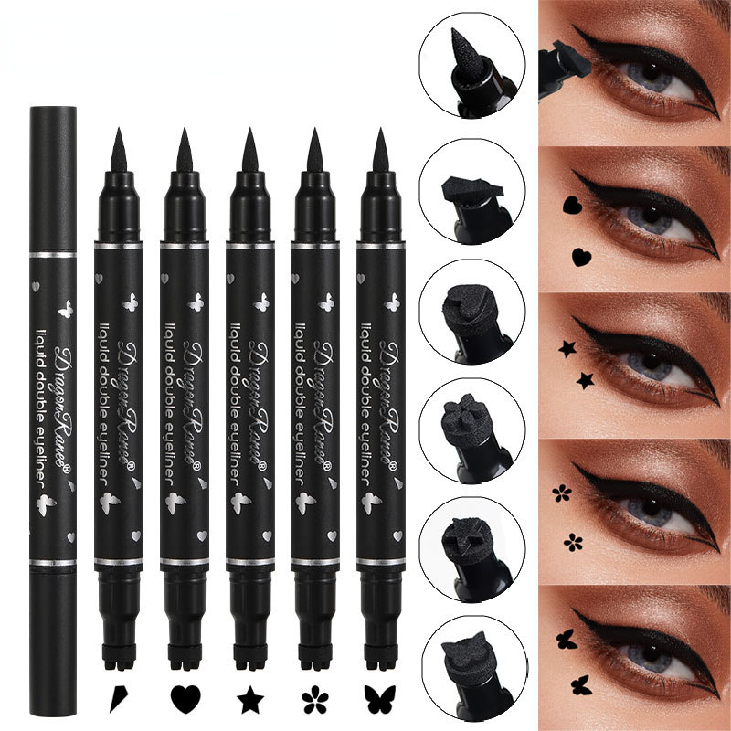 2 In1 Winged Stamp Liquid Eyeliner Pencil Water Proof Fast Dry Double-ended Black Seal Eye Liner Pen Make Up for Women Cosmetics