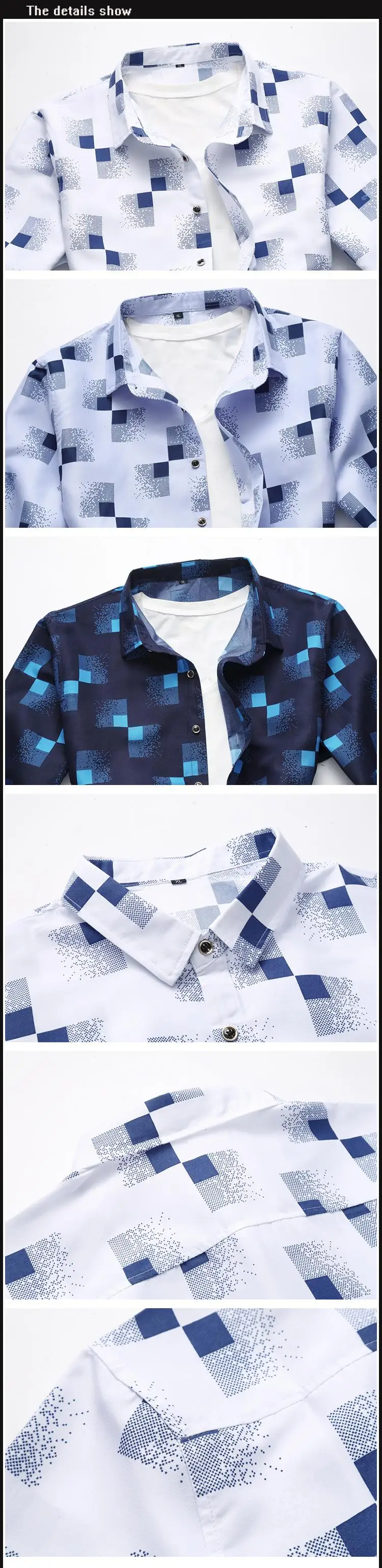 2018 spring plaid print man shirt long sleeve luxury plus size 7XL shirt silk men designer dress shirts men