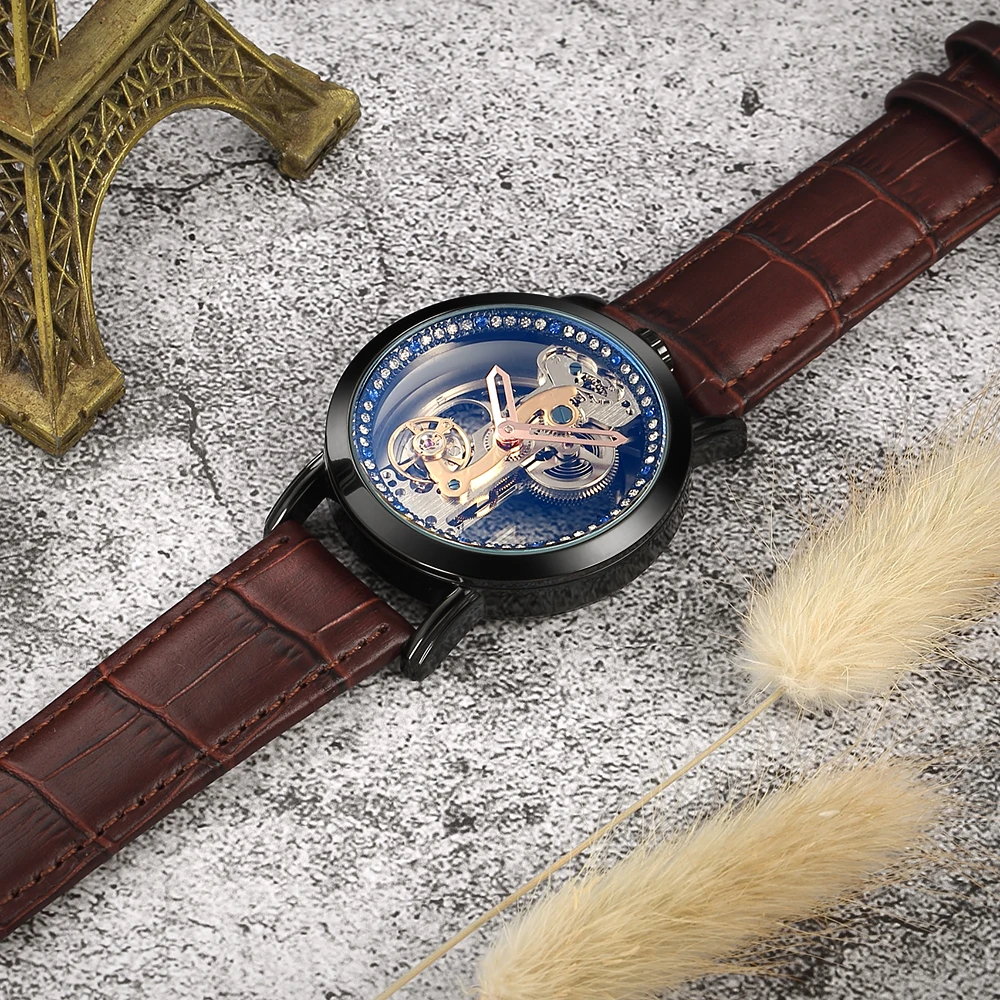 2019 Fashion Skeleton Sapphire Crystal Women Mechanical Watch Luxury Brand Leather Women Automatic Watch Women relogio feminino