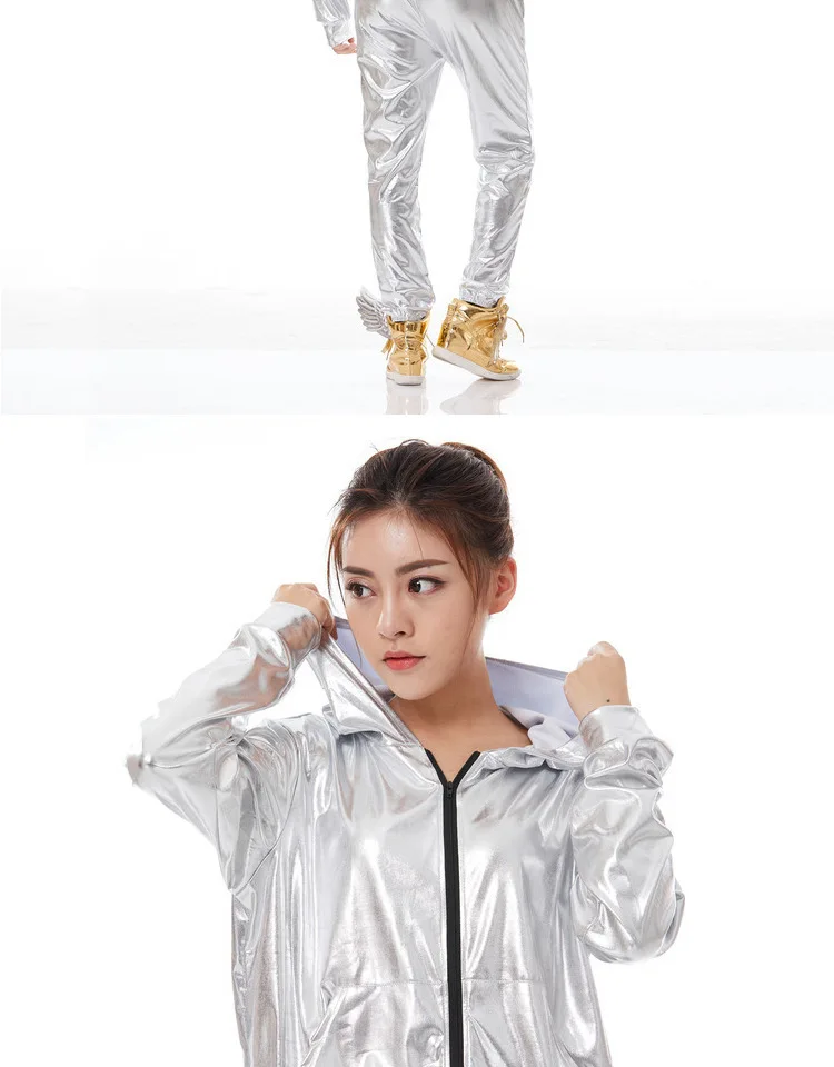 2021 New Spring Autumn Kid Audlt Bomber Pockets Jacket Silver Stage Performance Paillette Feminina Casaco Hip Hop Dance Coat