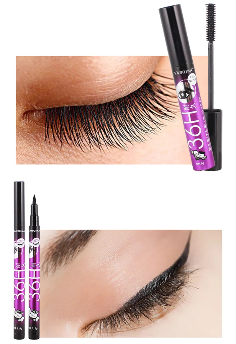 36H Black Waterproof Liquid Mascara 4D Fiber Lashes Curling Thick Lengthening Black Mascara Volume Eyelashes Korea Makeup Set