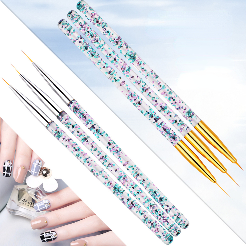 3Pcs Acrylic French Stripe Nail Art Liner Brush Set 3D Tips Manicure Ultra-thin Line Drawing Pen UV Gel Brushes Painting Tools