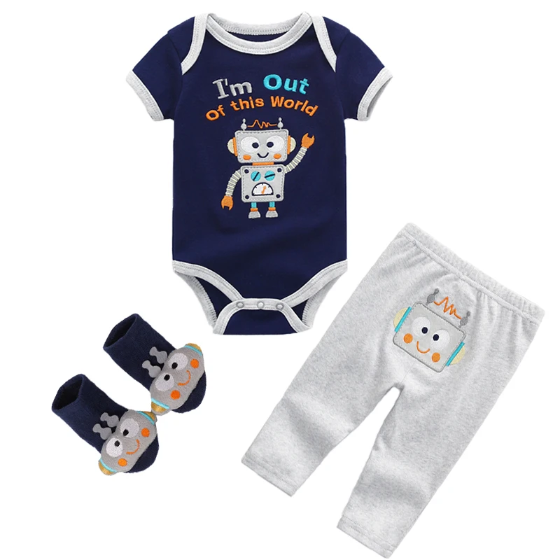 3Pcs/lots Baby Girls Gift Collection,baby Clothing 6-12 Month Baby boys cotton cutes Bodysuits+ Pants +baby Socks Suit Set