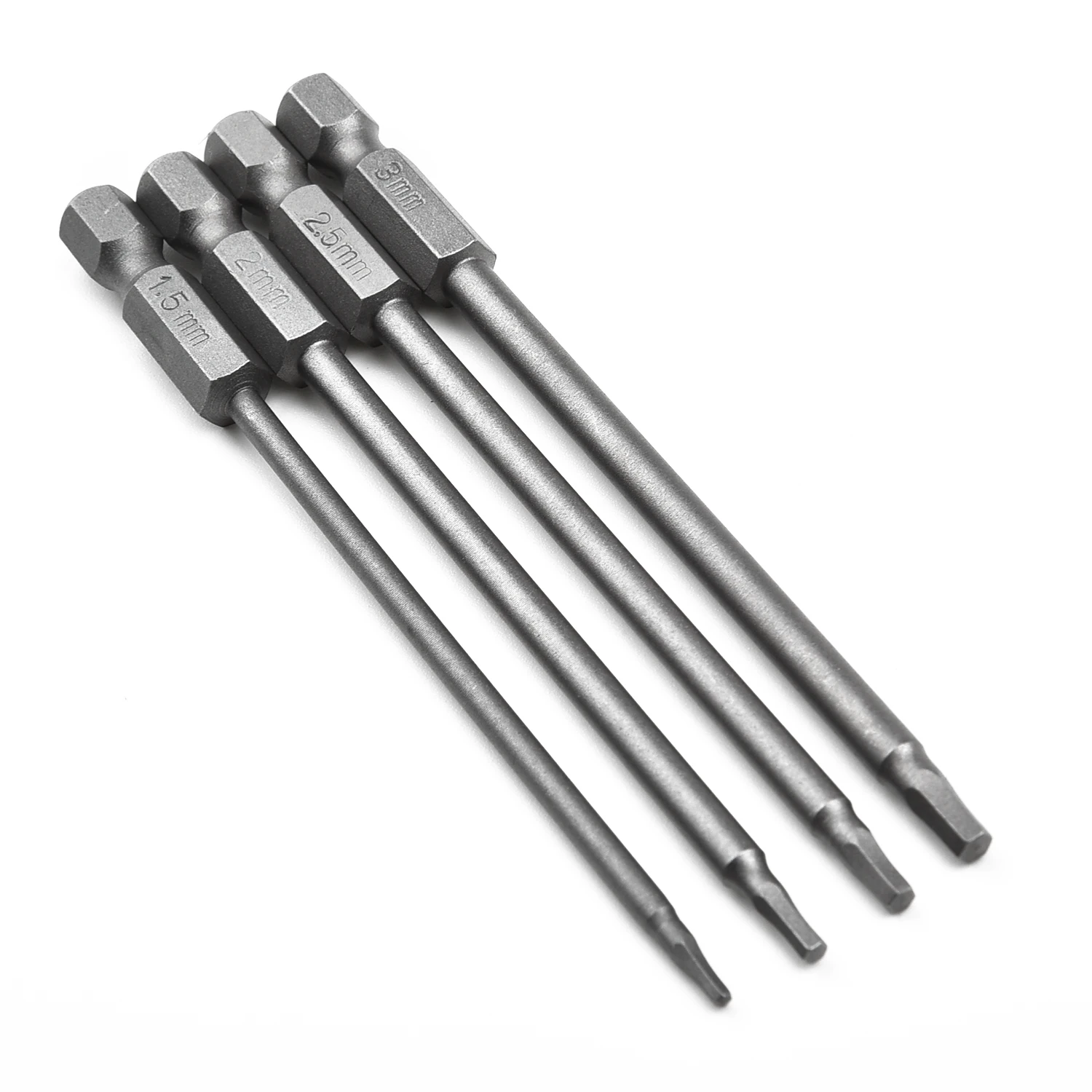 4pcs Magnetic Bit Holders1/4 Hex Shank Magnetic Head Screw Driver Screwdriver Bit Long Extension Bar Tools 1.5/2.0/2.5/3.0mm