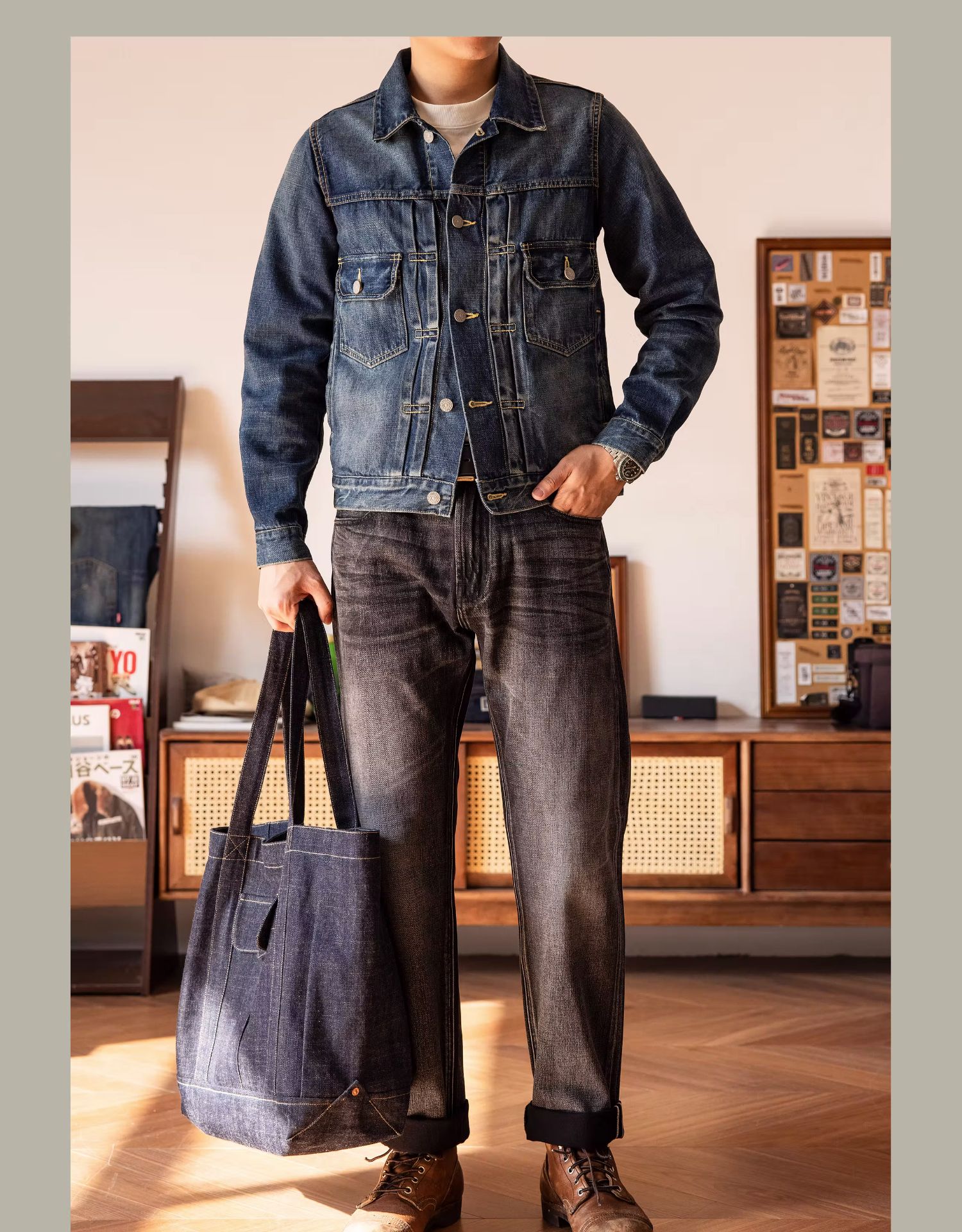 511XX-0013 Red Tornado Good Quality Washed Slim Fitting Denim Pants 100% Cotton Heavy Thick Jean 14oz