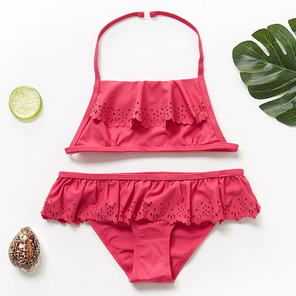 5~14Years Teenager Girls Swimwear two pieces Girls Swimsuit Hollow out Kids Bikini Set Ruffle style Kids Beachwear-ST9031
