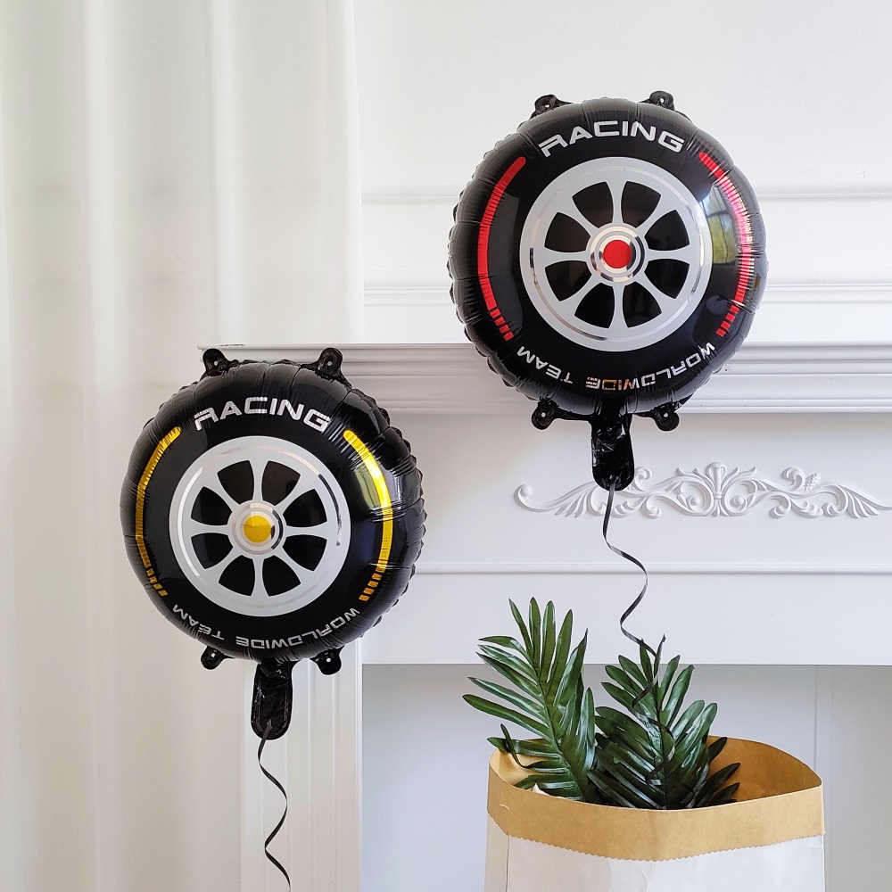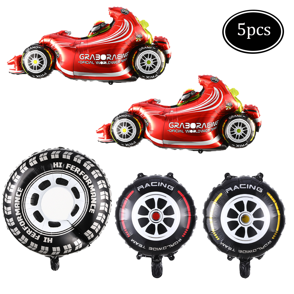 5pcs Racing Car Balloon Set Wheel Helmets Foil Balloon Racing Checkered Balloon Black Two Fast Theme Boy Birthday Party Decor