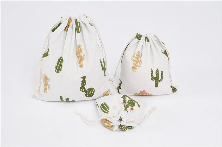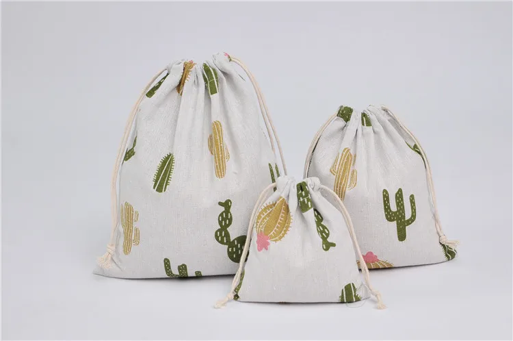 6 Color Casual Women Cotton Drawstring Shopping Bag Eco Reusable Folding Grocery Cloth Underwear Pouch Case Travel Home Storage