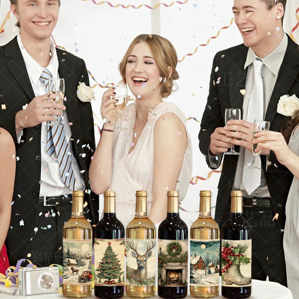 9pcs Merry Christmas Wine Bottle Label Wraps Stickers Xmas Party Decoration New Year Navidad Gift DIY Sealing Stickers Supplies